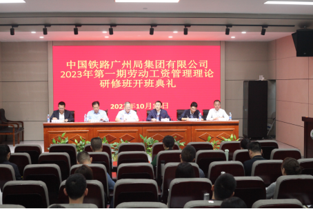 2023年10月31日,中国铁路广州局集团有限公司2023年第一期劳动工资管理理论研修班开班典礼在我校顺利举行。广州局劳卫部副主任蓝瑜晟、劳卫部副科长刘鑫,我校对外联络处、校友办公室主任段戈宏,6776永利集团党委书记王朗、副院长余得生出席典礼。
