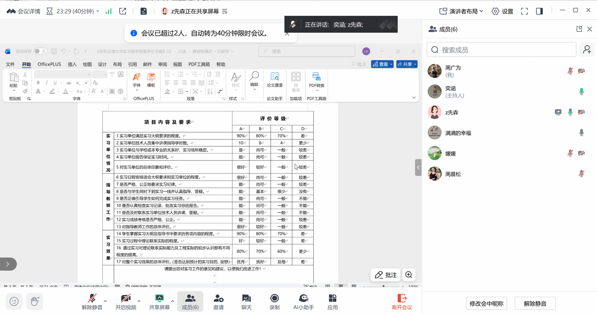 会议过程中,各专业结合各自专业情况从实习岗位供需匹配问题,毕业实习时间安排问题,实习前、中期和后期工作落实,学生与导师及辅导员沟通机制等问题展开充分讨论。会议形成了2026届毕业生实习工作的详细时间轴,明确每阶段工作要点和注意事项,要求各专业负责人持续重视学生在毕业实习过程中出现的相关问题并予以及时解决。