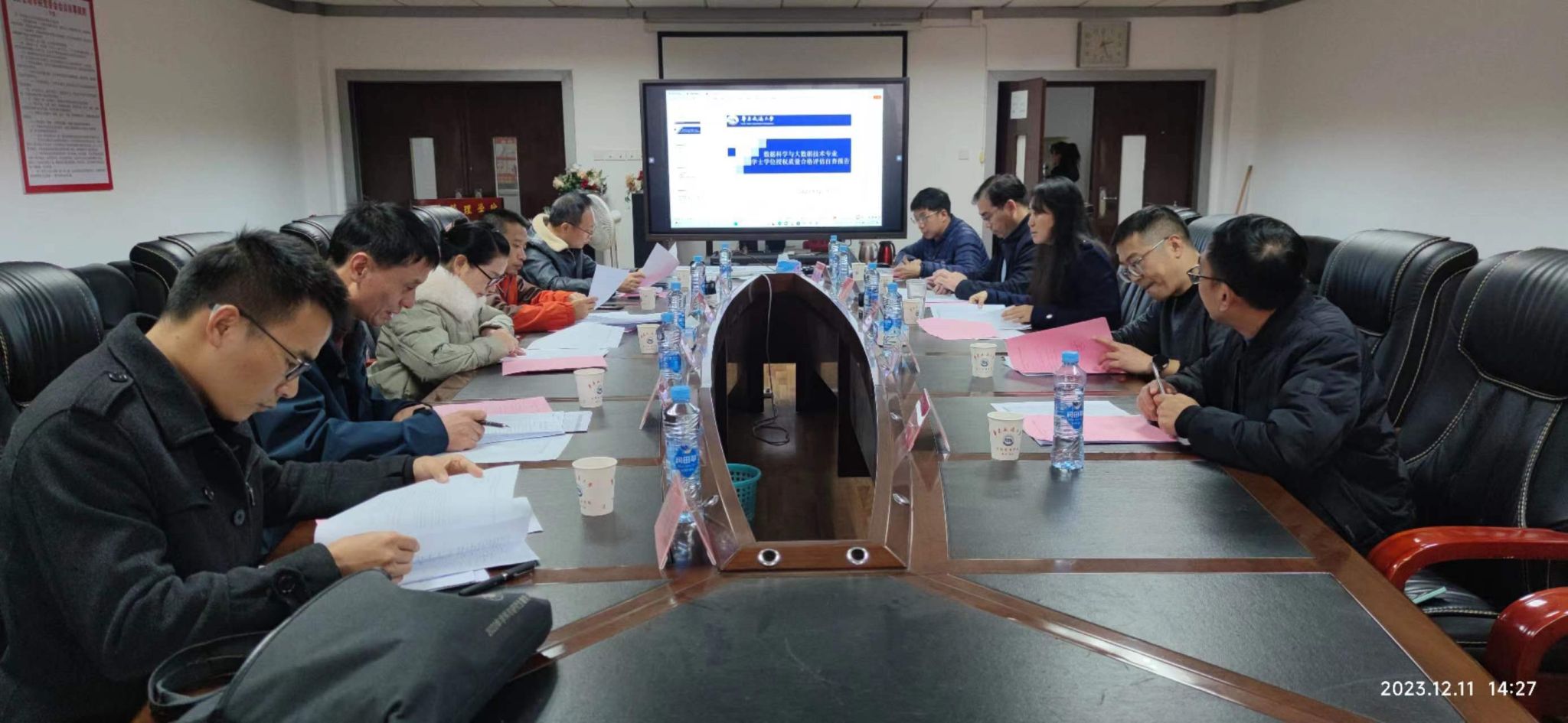 我校数据科学与大数据技术专业于2018年通过了教育部普通高等学校本科专业备案和审批,并于2019年开始招生,今年有第一届毕业生。按照通知要求需参加2023年度全省学士学位授权质量评估。由于数据科学与大数据技术专业前两届学生(2019级与2020级)在经管学院,教务处将评估工作的任务安排到经管学院。学院在12月6日接到任务后,非常重视,迅速组织统计系数据科学与大数据技术专业相关教师启动了自评工作。我校数据科学与大数据技术专业情况较为复杂,该专业目前已经从经管学院转至软件学院。老师们克服各种困难,多方协调,周末加班加点,仅用三天时间就完成了自评报告的初稿。为了提高论证工作的质量,学院又先后组织了两批专家对自评报告进行讨论。这两批专家都是来自经管学院和软件学院资深教授,他们对自评报告内容进行了热烈讨论,提出了许多建设性的意见。