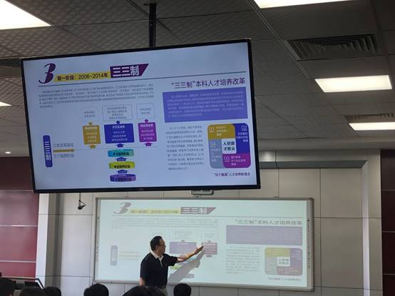其次,史教授讲了商学院的主要培养方向,以南京大学为例,南京大学本科教育的“三三制”中有三条发展路径分别为:第一,培养专业学术人才;第二、培养复合交叉型人才;第三、培养创新创业人才。