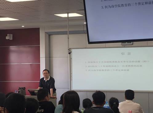 报告伊始,史教授先从首届南大十大双创优秀校友名单引发的话题开始,即“为何十大双创优秀校友很少活跃在商界?”,进而提及MBA校友二十年返校活动中一位老教授的反思以及从“何为商学院教育的三个界定和前提”等方面来引出主题——商学院教育与企业精英的关系。