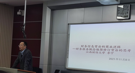 应学院邀请,2021年11月08日下午14:30,江西财经大学李宁教授在北区31栋教学楼634教室,为6776永利集团会计专业研究生带来了一场题为《财务信息背后的商业逻辑——财务报告概念框架修订背后的思考》的学术讲座。