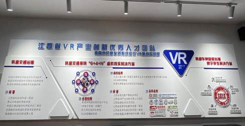 紧接着同学们来到南昌市轨道车辆系统实训VR重点实验室,该实验室推出的轨道交通系统“6+4+N”虚拟现实解决方案能有助于轨道交通运维、企业应用、高校教育,并多次获得国家级、省级奖项。在这里,同学们了解了VR技术在企业员工培训及教育知识可视化方面的技术应用,王芸教授更是亲身体验了一下VR技术在教学中的应用,并让同学们思考VR技术在财会专业教学中能否有所提升。