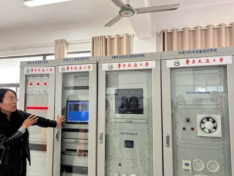 随后同学们来到轨道交通基础设施性能检测与保障国家重点实验室,在这里同学们了解了实验室的发展过程、承担使命、所获荣誉及组成部门。指导老师先对实验室做了基本介绍,在一系列参与院士名单及获得的荣誉面前,同学们为母校感到无比的自豪。在学习过程中指导老师以西安东牵引变电所的实时状态作模拟演示,使教学更加生动有趣并加深了同学们对该系统的理解。