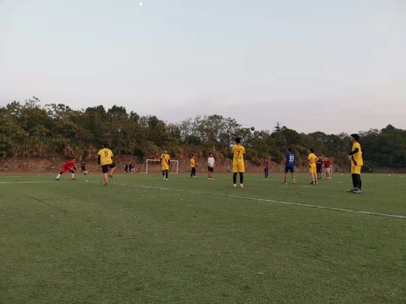 在这片广阔的场地上,足球总负责人带领队员做热身运动:拉伸、压腿。练习足球的基本要领、基本方法及基本动作。看似简单,但却能够避免运动造成的损伤,减少损伤的风险系数。练习过后,队员们也逐渐找到属于自己的感觉。哨音刚落,一场足球赛开始了!在比赛的过程中,队员们就像一匹匹草原上脱缰的“野马”,不断奔跑,抓住机会,猛然进攻。竞争和友谊结合,狂野和理性连接,勇敢和技巧融洽,欢笑和泪水相伴,甜蜜和辛酸平分,青春的线条被描绘的淋漓尽致。每次比赛结束后,队员们也会相互问好、切磋技巧。足球队始终秉承着“友谊第一,比赛第二”的理念,互帮互助,共同成长。