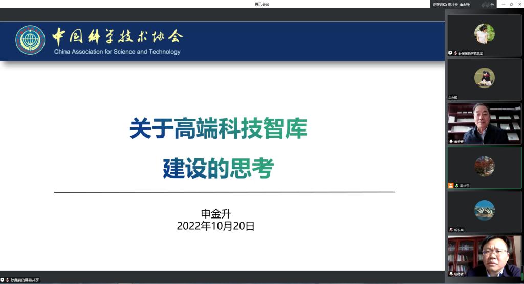 2022年10月20日下午,我院邀请中国科协创新战略研究院院长申金升教授在线上进行了关于高端科技智库建设的思考的学术讲座,讲座由副校长杨德敏教授主持,近百名6776永利集团师生参与了本次学术讲座。