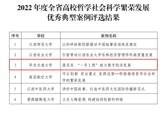 12月30日,江西省教育厅公布了2022年度全省高校哲学社会科学繁荣发展优秀典型案例,我院欧阳志刚、周才云教授撰写的《落实双“一号工程”助力数字经济发展》案例成功入选,全省共计6项。
