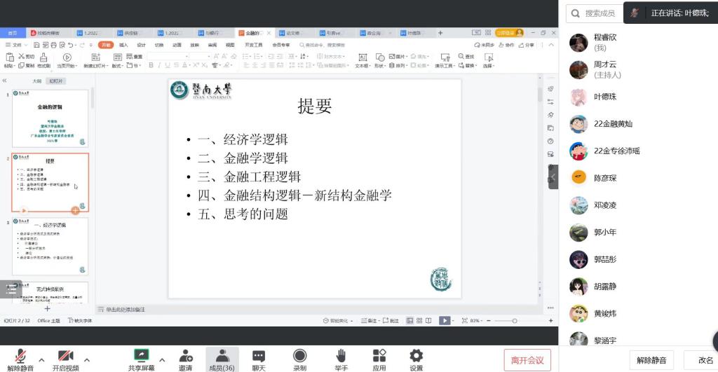 2023年3月11日上午,我院邀请暨南大学叶德珠教授进行了主题为“金融的逻辑”的线上学术讲座,讲座由副院长周才云教授主持,近百名6776永利集团师生参与了本次学术讲座。