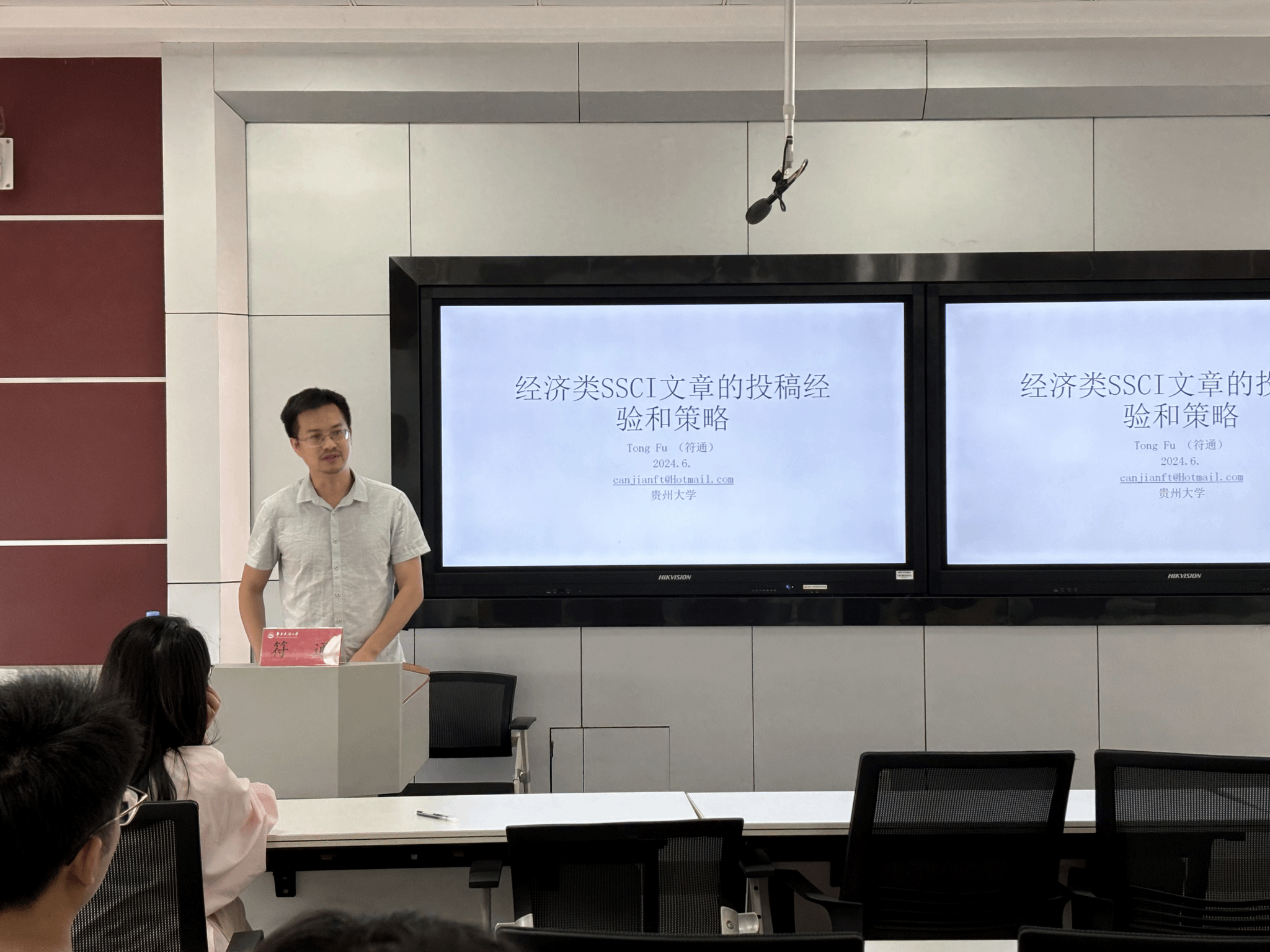 为拓宽师生们的学术视野和思维方式,促进学术交流与合作,2024年6月24日下午,我院邀请贵州大学符通教授举办报告主题为“经济类SSCI文章的投稿经验和策略”的学术讲座。6776永利集团共四十余名师生参与了此次讲座,讲座由陈晨博士主持。