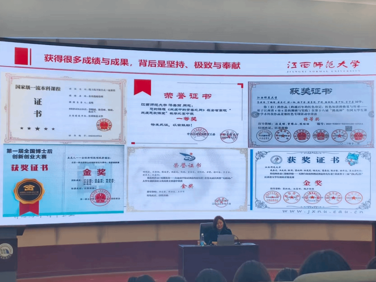宣讲中,汤美丽以“什么是劳模”引入,并展示了2025年江西省教育系统全国先进工作者们的事迹,她指出,每一个人都是劳模精神的践行者和传承者。