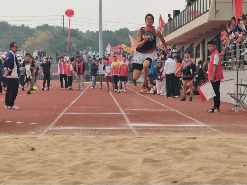 黄色沙地旁,他屏住呼吸,助跑,全力纵身一跃,平稳落地,这一系列的动作只在短短十几秒内就顺利完成。霎那间,全场轰动起来,观众们毫不吝啬地发出惊叹声与欢呼声。赛前,他在教练的悉心指导下,不断训练自己的弹跳力与助跑技巧,日复一日地做着高强度训练,只为在赛场上展露英姿。每一次助跑,都富有朝气;每一次起跳,都充满活力;每一次落地,都竭尽全力。平日里流过的辛苦的汗水,在这一瞬间都化为鲜花与掌声。他没有辜负教练的悉心教导,更没有辜负自己的艰苦训练。