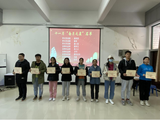 会议伊始,综合办公室负责人张紫一宣读了部门考核细则,强调了每月小结的注意事项,总结了在本月工作中出现的问题,并汇报了各部门考核结果。经过综合办公室多方面考核,结合各部门的工作成果以及工作人员的综合表现,最终评选出“每月之星”,分别为学术双创部尚科秀、学术双创部谢奇、学术双创部崔心珏、自律权益部晏梓玉、自律权益部袁小云、自律权益部许可、素质拓展部龚安吉尔、素质拓展部马劫、素质拓展部李洋。随后,学生会执行主席刘冉宣读《关于表彰6776永利集团十一月“每月之星”的决定》,并由学生会主席张紫一、龚钰洁为“每月之星”获得者进行颁奖。最后,龚安吉尔作为“每月之星”代表发言,她对获奖同学表示祝贺,并保证大家在下一阶段会继续踏实努力工作,更好服务同学。