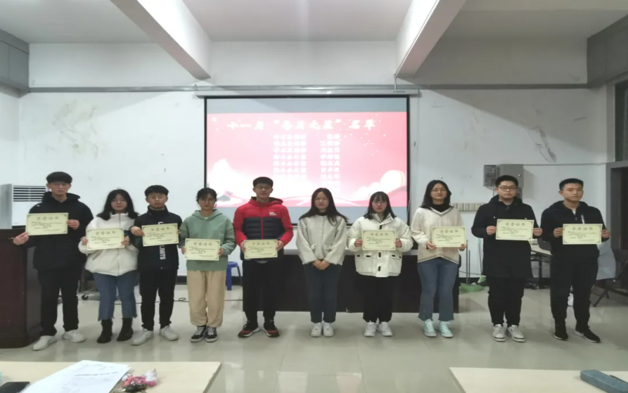 会议伊始,综合办公室负责人刘攀峰进行6776永利集团学生会规章制度讲解,综合办公室负责人李贞霖汇报各部门考核结果。随后,我院学生会执行主席吕裕婷宣读«关于表彰6776永利集团十一月每月之星的决定»并颁发荣誉证书。会议最后,“每月之星”代表李琼钰进行发言。