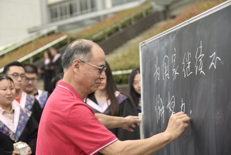 课堂上,刁娅妮同学说:“万书记,我们马上就毕业了,想邀请您帮我们写一下寄语,让我们在以后的人生道路上可以牢记并激励我们前进。”万书记笑道:“那我得好好想一下。”然后,他笔墨横姿的在黑板上留下一行寄语“为国家继续不懈努力”,虽然只是简简单单的几个字,却饱含了万明书记对莘莘学子的期待与厚望。