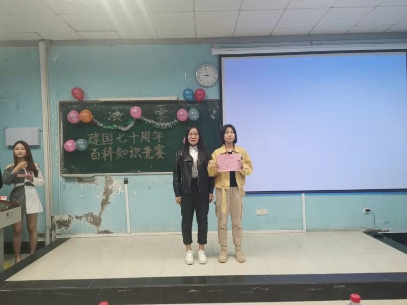 为响应“不忘初心、牢记使命”时代号召,回顾新中国七十年来发展历程,增强我院学生对祖国七十年来各方面发展的了解,我院学术部呈现了一场全新的知识盛宴——百科知识竞赛。11月2日,百科知识竞赛决赛于31栋举行。 本次决赛以中华人民共和国成立70周年为主题,考察学生对中华人民共和国成立以来我国取得丰硕成果的了解,内容涉及我国在政治、经济、科技等方面实施的重要方针政策以及取得的突破性成就。参赛的十二名选手需要经过两个环节角逐出最后的赢家。环节一为计时答题,每位参赛选手需在两分钟内完成自我介绍,在限定的100秒内回答出由评委提出的问题。各个选手充满信心,认真作答,对于评委的提问,给出一个又一个准确答案。高手之间的精彩较量让人连连赞叹,现场响起一阵阵响亮的掌声。环节二为即时记忆,参赛选手现场观看一段视频后,需要凭借速记能力在规定时间60秒内回答5个问题。整个过程,参赛选手需高度集中注意力,将自己眼睛所见、耳朵所听存储在脑海里,给出准确答案。整个过程,在座所有人与各位选手一起共同熟悉百科知识,更有猜歌名,你画我猜等小游戏,点燃现场的气氛。