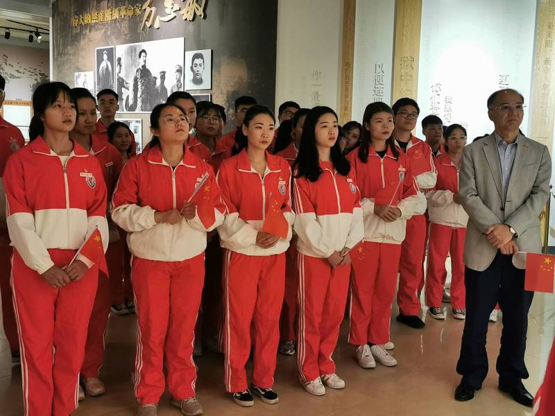 首先,在16级金融一班三位同学声情并茂的讲解下,万明老师与全体师生共同参观了方志敏烈士事迹陈列室六个主题区,重温方志敏烈士的丰功伟绩和他不平凡的经历。一件件的陈列品,一幕幕情景生动再现了方志敏领导的抗日先遣队创建红色政权的英雄事迹。仿佛置身于那段艰苦卓绝的革命时代。大家无不被方志敏烈士不惧炮火与屠刀,笃定信念追求真理的大无畏精神和不幸被捕后表现出的共产党人钢铁般的意志与坚贞不屈的气节所震撼。