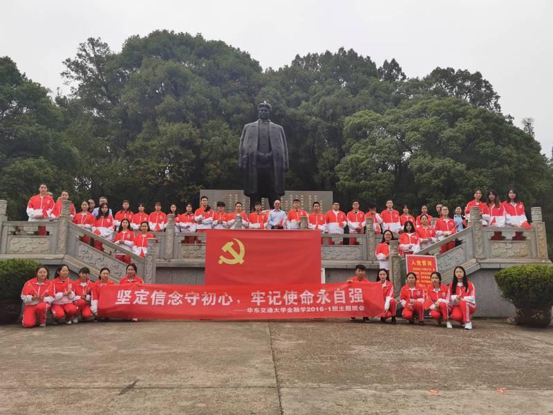 梅岭山麓下,烈士陵园,苍松碧翠环抱,蓊郁葱翠,庄严肃穆。校党委书记万明与16级级金融一班的全体同学沿着石阶来到烈士墓前,敬献花篮,鞠躬敬礼,并庄严默哀一分钟,表达对先烈的追思。随后,在方志敏烈士雕塑前,全体师生党员一起重温了入党誓词。在党的事业领导者、开拓者面前,全体党员佩戴党徽,举起右手、一起向党旗庄严宣誓,重温入党时的庄严承诺和坚定决心。通过重温入党誓词活动,全体师生党员教师更加坚定信念,牢记自己作为共产党员的责任和使命。最后,在全体人员合唱《歌唱祖国》的歌声中结束了本次班会。班会结束之后,全体与会人员在方志敏烈士雕塑前合影留念。