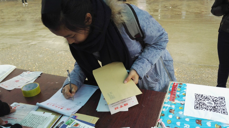 驿寄书情校园间,真心思念遍四海。11月24日至25日,yl6776永利集团爱心社配合感恩节氛围,开展公益性活动“微信使”,分别在南北两区设点摆摊,为全校师生提供免费代寄服务。