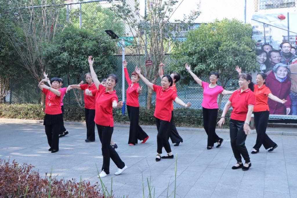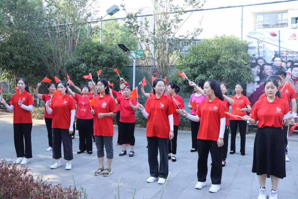 正当社区党员同志带领大家参观光明社区,了解社区的发展历程之时,红色走访小分队遇见社区“夕阳绿化文工团”、“红歌嘹亮”幸福大妈合唱团等排练舞蹈,红歌悠扬,舞姿动人,小分队被这样的氛围深深打动,情不自禁地融入其中,向阿姨们学习舞蹈,与阿姨们共唱红歌。随后同社区文工团与合唱团开展了共唱一首红歌、红歌传唱、共同诵读红色家书等活动。