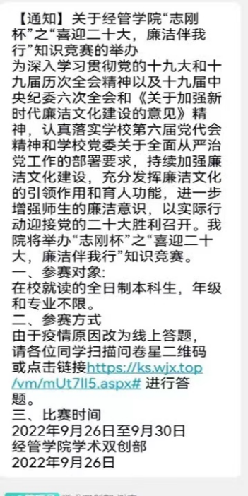 为深入学习贯彻党的十九大和十九届历次全会精神,认真落实学校第六届党代会精神和学校党委关于全面从严治党工作的部署要求,持续加强廉洁文化建设,充分发挥廉洁文化的引领作用和育人功能,6776永利集团举办“志刚杯”之“喜迎二十大,廉洁伴我行”知识竞赛,以实际行动迎接党的二十大胜利召开。