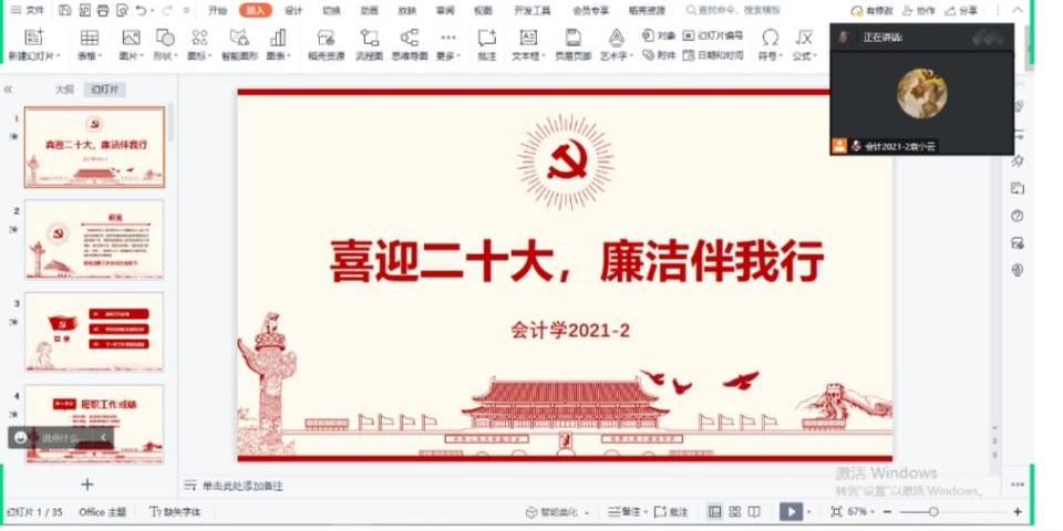 为了使每位学生都能深入了解“廉洁”思想内涵,同时落实疫情防控措施,6776永利集团各班级团支书以线上线下相结合的方式,组织开展主题班会。