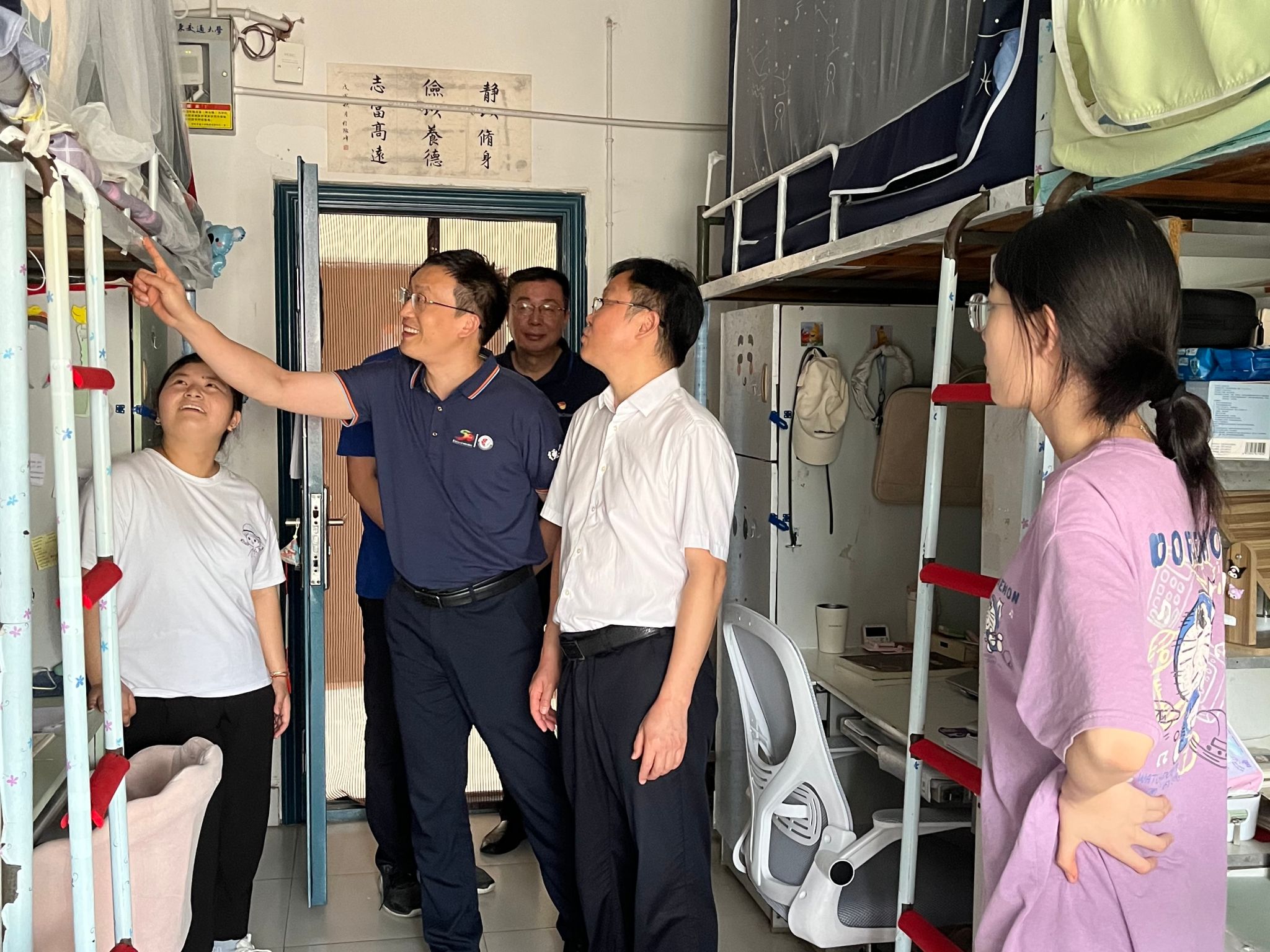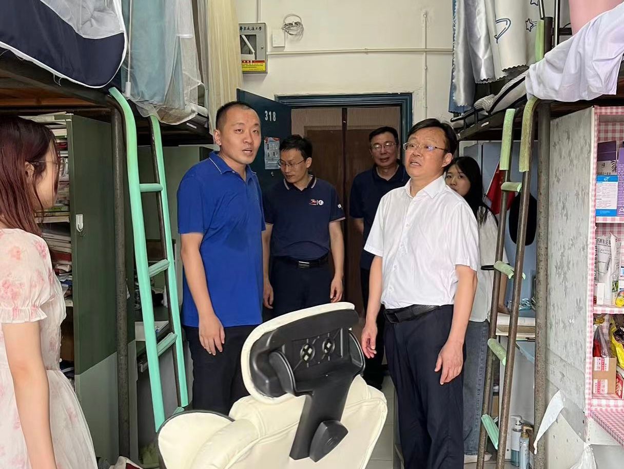 会后杨德敏教授前往2022级学生宿舍,亲切慰问同学,关心同学生活,对宿舍的整洁十分称赞,并且提醒同学暑期注意安全。