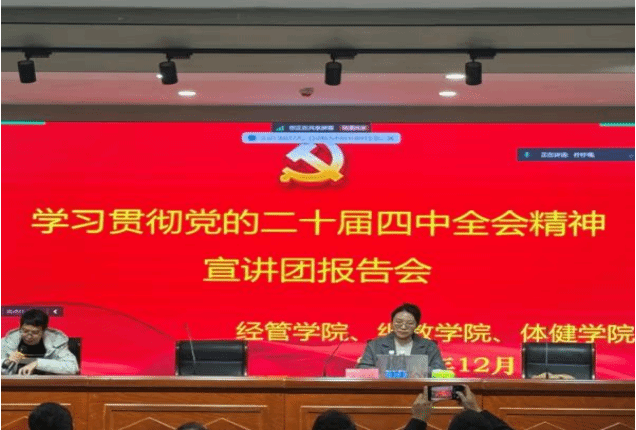 12月12日,为深入学习贯彻党的二十届四中全会精神,学校宣讲团成员、马克思主义学院黄晓晔教授应邀在教31栋104报告厅作专题宣讲报告。6776永利集团、继续教育学院、体育与健康学院各党支部委员会成员参加学习。