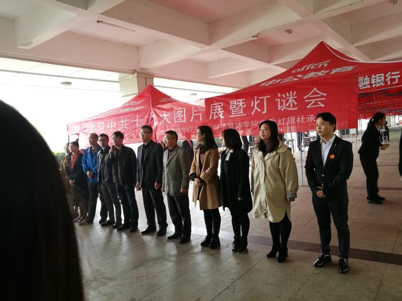 华东交大的经管党委红旗社也不例外,在全国学习十九大精神的热潮中举办此次大型活动——“学习中共十九大图片展暨灯谜活动”。