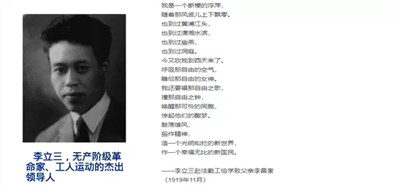 第二部分,中国共产党成立及国共第一次合作 。 1922年1月的香港海员罢工至1923年2月的京汉铁路工人罢工,在短短的一年零一个月时间里,由中国共产党领导和支持的大小罢工就达100多次,参加人数在30万人以上。1924年1月下旬,国民党第一次全国人民代表大会在广州召开。在出席开幕式的165名代表中,共产党员有24人。大会通过了以反帝反封建为主要内容的宣言,确定了联俄、联共、扶助农工三大政策。1926年,国共合作,进行北伐。北伐军很快歼灭吴佩孚、孙传芳部主力,革命势力发展到长江流域。
