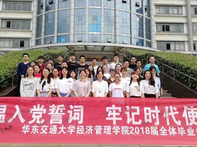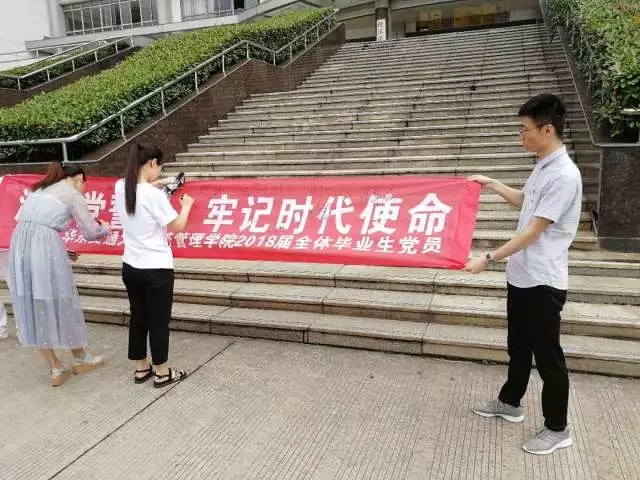为加强毕业班党员的党性教育,切实发挥党员的先锋模范作用,经管学院全体毕业班党员于2018年6月1日上午十点,在31栋经管大楼前进行重温入党誓词主题活动。本次仪式由6776永利集团学生第三党支部书记吴钰娟同志主持。学生第一党支部书记程丽琴老师、二支部书记曾瑾老师、六支部书记陈富茂老师出席本次活动。