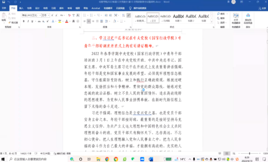 4月19日上午,经管学院线上召开党委理论学习中心组集中学习会,认真学习习近平总书记在中央政治局常务委员会上的重要讲话精神、习近平总书记在中央党校(国家行政学院)中青年干部培训班开班仪式上的重要讲话精神、习近平总书记在中共中央政治局第三十七次集体学习时的重要讲话精神。本次会议由院党委书记王朗主持,学院党委委员参加。