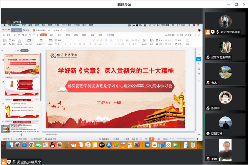 最后,蔡卫平指出,此次经管学院理论中心组学习,在思想上,高度重视、安排细致、组织严密;在内容上,结合二十大精神,主题鲜明,紧跟时代步伐;在学习效果上,既有理论的深度,又有现实的意义,将理论的学习转化为学院发展的实际成效,做到了知行合一。望经管学院党委今后进一步加强自身建设,凝心聚力,踔厉奋发、勇毅前行,不断开创新时代学院党建工作新局面,为谱写学院更高质量发展的新篇章不懈奋斗。