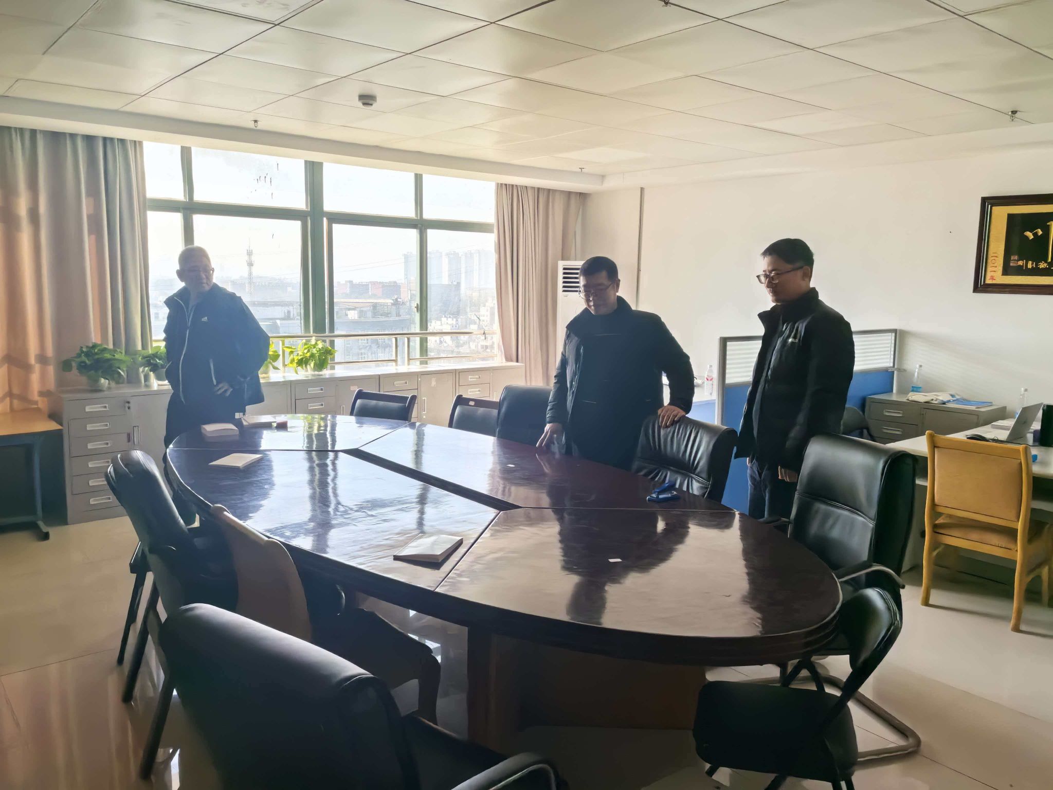 学院班子成员检查系部办公室。