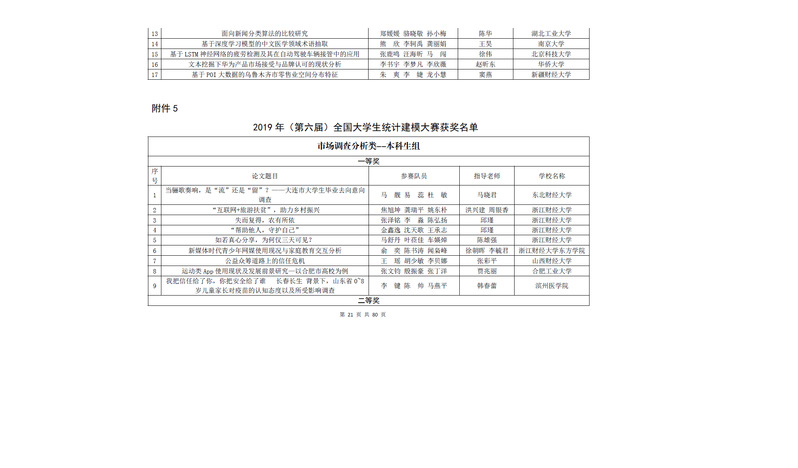 在2019年(第六届)全国大学生统计建模大赛中,我院冒小栋老师指导的本科生组市场调查分析类《“住寝”or“租房”——校园商业租房可行性研究》荣获全国二等奖。