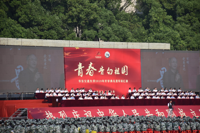 在开学典礼上,罗玉峰校长代表全体师生祝贺2019级新生为军训交上了一份完美的答卷,并向2019级新生表示了热烈欢迎,强调了交大是一个可以尽情展示自我才华的地方,是一个帮助我们实现梦想走向成功的地方。新学期全体师生应仰望星空,脚踏实地,永不服输,拼搏进取,超越自我!圆梦华交,做出彩中国人!为此校长特别叮嘱学子大学最重要的是学习。珍惜学生时代,与知识为伍,与智慧为伍。做到知行合一,发扬詹天佑精神。