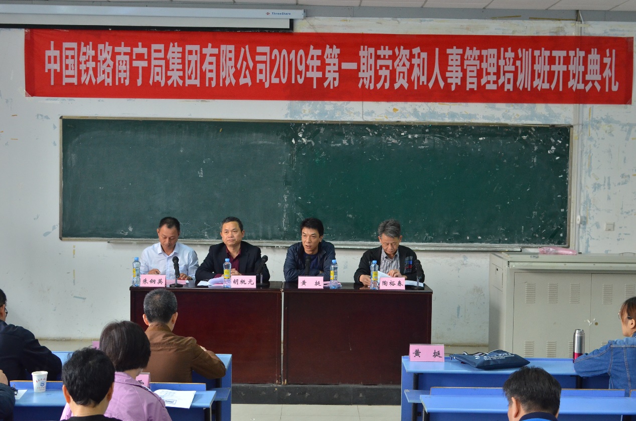 5月7日上午八点,中国铁路南宁局集团有限公司2019年第一期劳资和人事管理培训班开班典礼在我院31栋116教室顺利召开。我院党委书记胡桃元、南宁局集团公司劳卫部副处长黄挺、副院长陶裕春、院长助理、培训班班主任朱钢英出席了此次典礼。