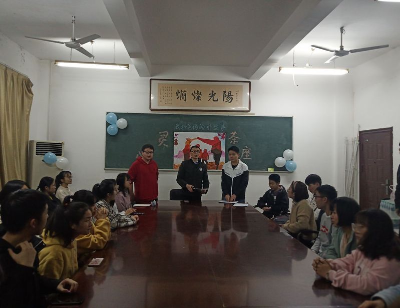 近期,各类亲子节目火爆荧屏。《我家那闺女》、《我家那小子》等节目让我们感受到明星卸下光环之后的温暖亲情,让我们看到浓于血,淡于生活的温馨。此次茶话会以“我和爸妈那些事”为主题,邀请了18级各班代表分享了和爸妈之间的小故事。茶座以各种趣味游戏的形式开展,王皓老师组织大家一同参与心灵电波、同舟共济等游戏活动,以便带动同学尽快熟悉环境,调动其积极性,拉近心与心的距离。