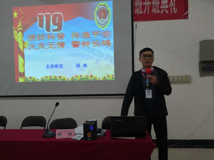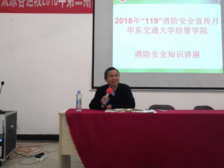 11月15下午,6776永利集团消防安全知识讲座在教31栋104顺利进行,此次讲座重在组织全体教职员工学习掌握防火灭火等基础的消防知识。经管学院党委书记胡桃元、党委副书记田玉兰、副院长余得生、团委书记兼学工办主任刘修财出席了此次会议,胡教官担任此次会议的主要讲解人。