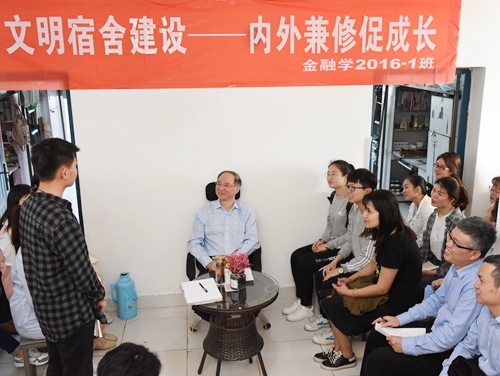 把思政班会开在宿舍楼,把文明种子撒在心田上——校党委书记万明给金融2016-1班上思政课