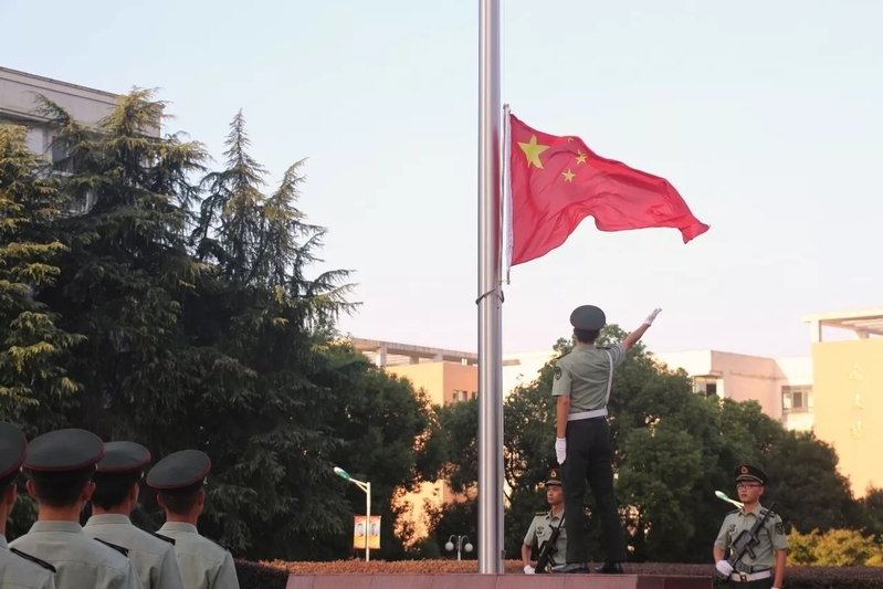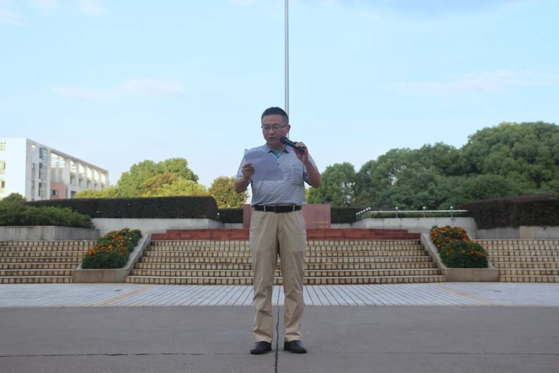 随着清晨的第一缕阳光,老师和同学们列队来到了升旗台。他们上白下黑统一着装,展现了对国旗的尊重及交大学子积极向上的精神面貌。伴随着嘹亮的歌声,师生们目送鲜艳的五星红旗缓缓升起。随后曾友田进行了题为“家国天下,不忘初心”国旗下的讲话,他引经据典,从国家历史到民族英雄民族精神的崛起,从青年家国天下的勇气到国家的腾飞,字字锱铢,激励同学们从点滴做起,勿忘国耻,砥砺前行,不忘初心,积微成著。