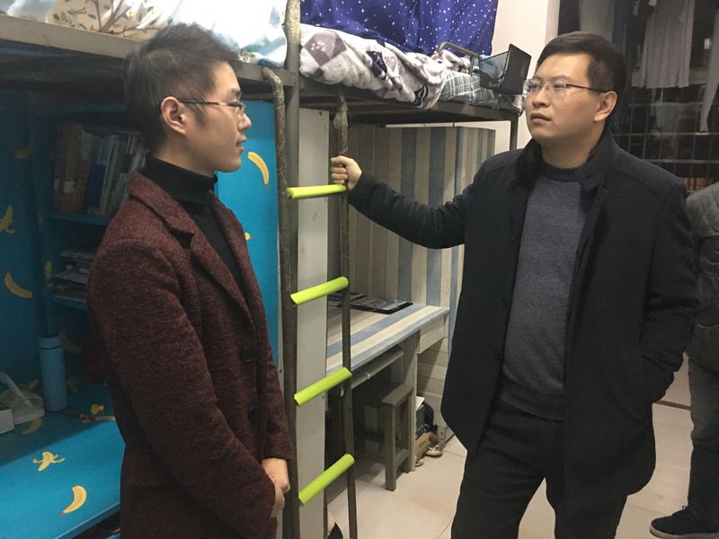为进一步落实寝室卫生文明建设工作,11月28日晚,校学工处处长陈磊、经管学院学工办主任刘修财前往北区44栋经管学院男生寝室楼进行视察。