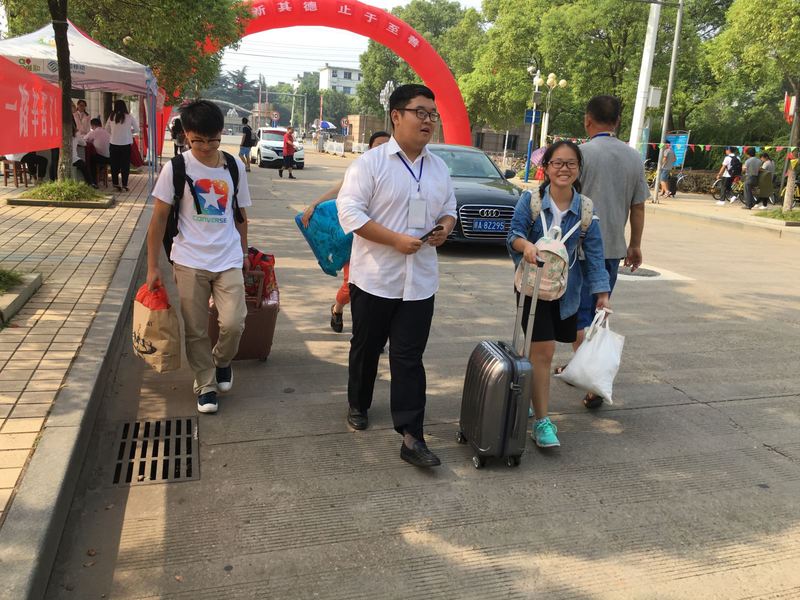 来来回回的接送工作也并没有使志愿者们懈怠于自己的工作,他们热心的欢迎每一位新生的到来,帮家长学生们搬运行李,让刚踏入大学校园的新生们感受到了不一样的温暖。今天迎新最大的亮点就是成立的党员服务制,党员代表们志愿加入迎新队伍,服务于新生。6776永利集团党委副书记曾友田,6776永利集团学工办主任刘修财亲临迎新现场并和新生进行了亲切的交流。
