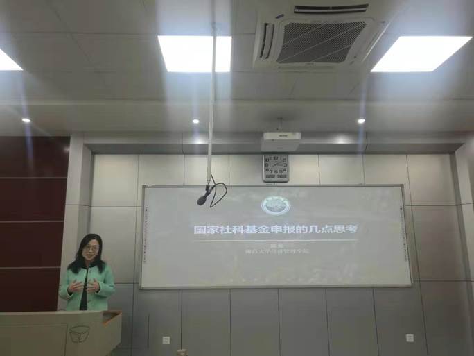 报告中,陈熹教授以自身申报经历为起点,向大家提出关于国家社科基金申报中的几点思考与建议。她从国家社科基金选题工作切入,讲述近期撰写报告时的经历与感受,向大家讲解关于选题开展工作、开展意义等方面的问题。同时陈熹教授提出,若是撰写过程中遇到瓶颈,不要急于求成,从一个旁观者去审视,从评委的角度、不同专业领域的专家的角度去审视获得新的思考。