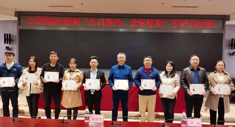在培训结束前举行结业证书颁发仪式,仪式由江西省MBA联盟现任主席郑佳武同志主持并宣读合格人员名单。期间,小组学员代表上台分享学习培训心得体会,学员们表示,将带着井冈山精神,不忘初心、砥砺前行,以更加坚定的信念、更加自觉的行动投入到本职岗位工作中,为学校和工作单位内涵式、跨越式发展作出更大贡献。通过本次学习,对井冈山斗争的历史有了更清晰的认识。