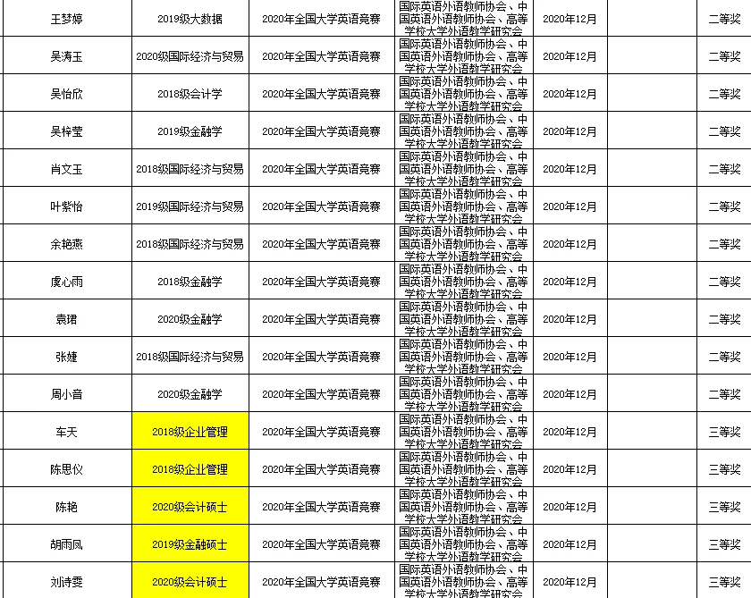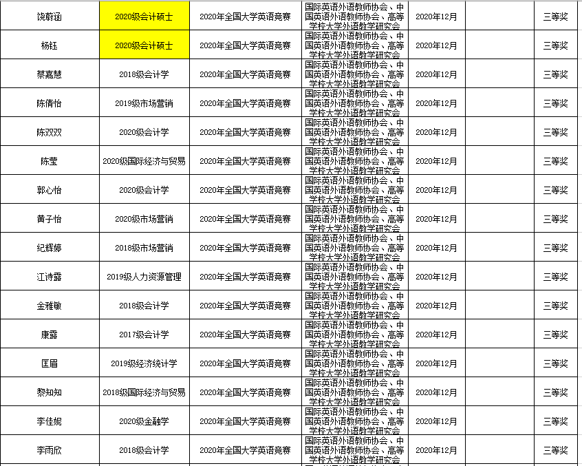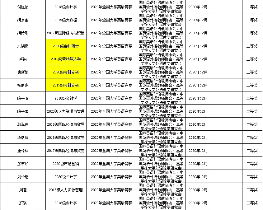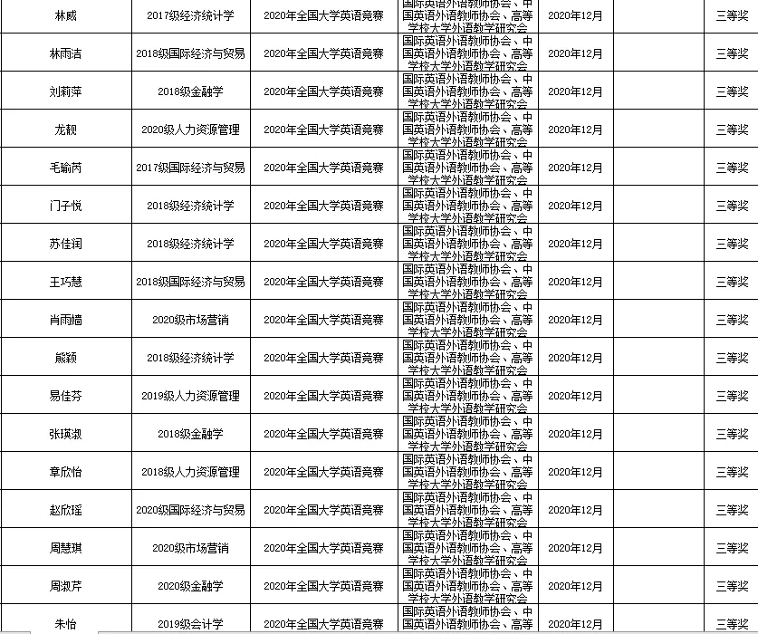 在本次英语竞赛中,我院高度重视、积极鼓励学生参赛,学生们也积极踊跃参赛。在经过辛苦的准备与筹办工作与考试后,我院收获颇丰,成绩喜人,共有3人获得一等奖,24人获得二等奖,38人获得三等奖,共计59人获奖。