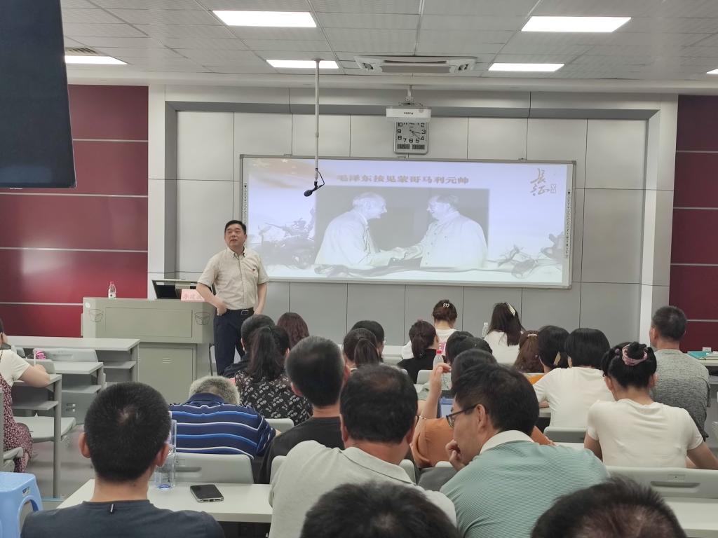 为深入贯彻习近平总书记关于党史学习教育的重要讲话精神,贯彻落实学校《关于在全校开展党史学习教育的实施方案》要求,推动学院党史学习教育走深走实,6月17日,我院特邀校党史宣讲团成员、图书馆总支委员、副馆长李建波,为全院教职工带来一堂题为“长征精神 永放光芒”的党史学习教育专题党课。