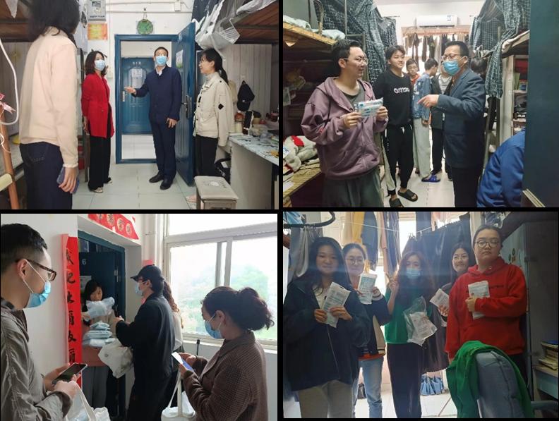 突发的疫情“倒春寒”牵动着我们每一个人的心,“隔屏守望”的线上教学和“疫”起守护的封闭管理校园生活已持续一个多月,为深入了解校园封闭管理期间学生的学习生活状态和精神面貌,全面扎实做好疫情防控常态化工作,守护好学生生命安全和身体健康,5月1日上午,全体在校院领导及教工走访学生宿舍,向同学们转达了学校党委的关心与问候,送上了学院暖暖的“抗疫包”。