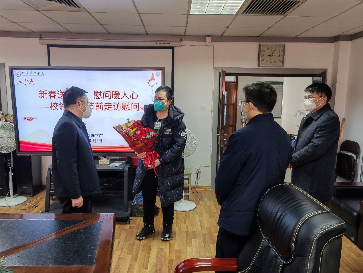 易魁,副教授,仅2022年一年间主持立项国家社科基金项目、教育部人文社科基金项目、省教改、省教规、省社科、教育厅科技项目,以及校级教学类项目(2项)共8项,发表多篇SSCI/SCI论文,受邀担任SSCIQ1期Guest Associate Editor。慰问中,校党委委员、副校长杨德敏对易魁老师取得的成绩表示祝贺,高度赞扬了易魁老师刻苦钻研的精神。鼓励他要继续努力,争取做出更大的成绩,为学校学院事业发展作出更大贡献。
