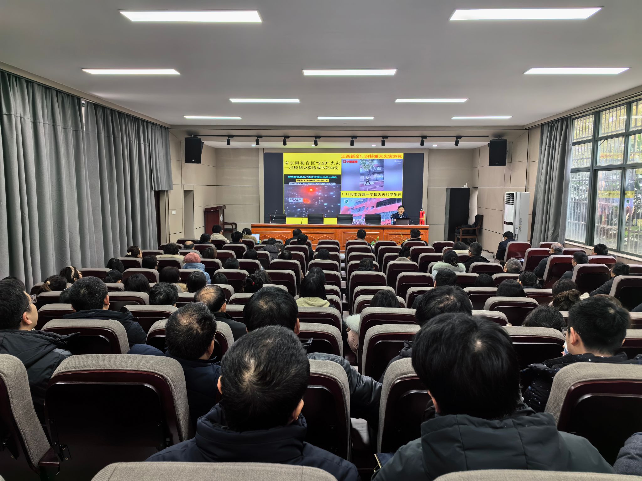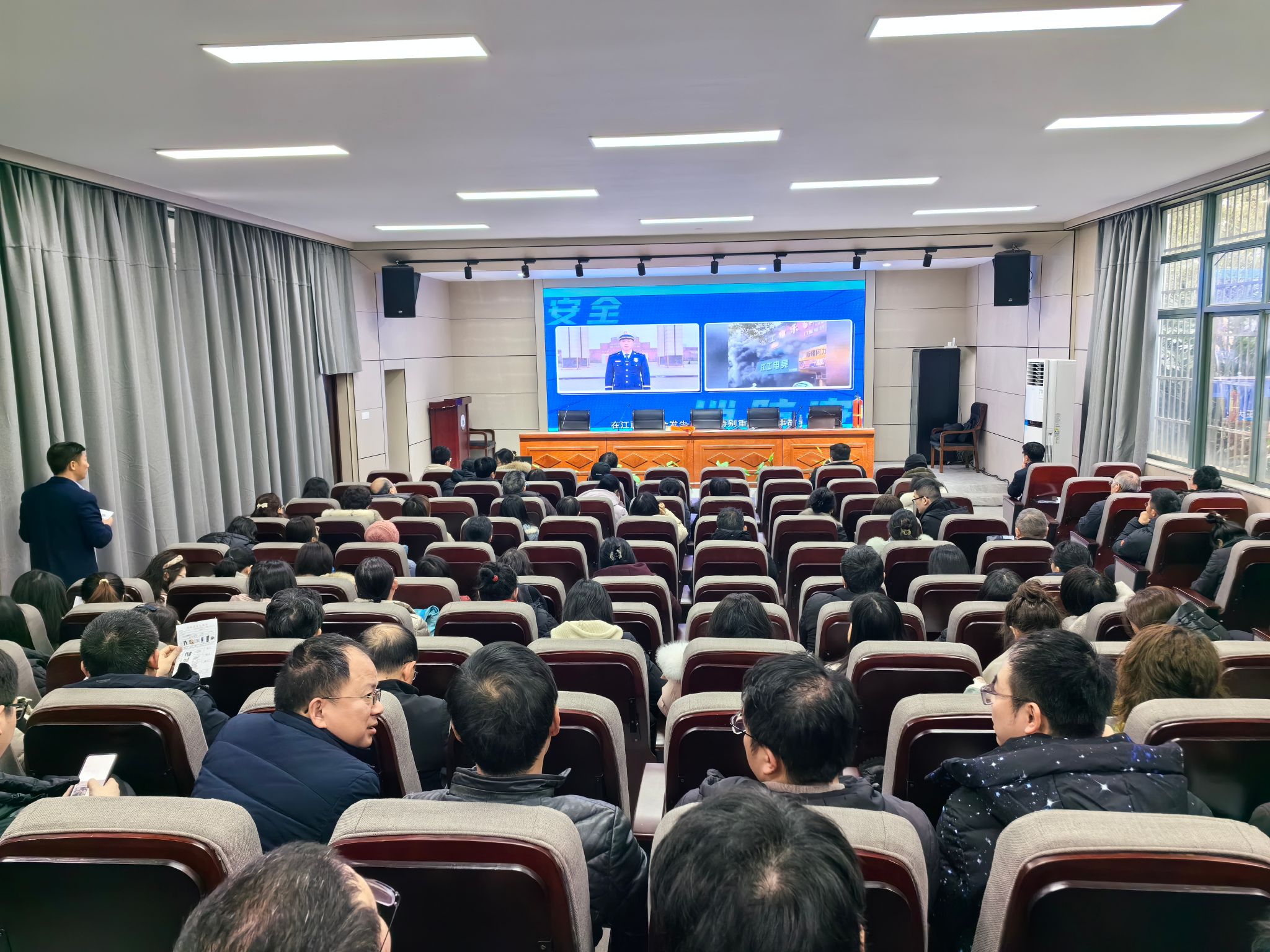 为扎实做好校园消防安全工作,进一步增强全院师生的消防安全意识,提高应急处置能力,2024年2月29日,我院组织开展了消防安全培训讲座暨消防安全教育开学“第一课”,并邀请了消防专业老师进行授课,全面筑牢校园“防火墙”。全院教职工及学生代表参加。