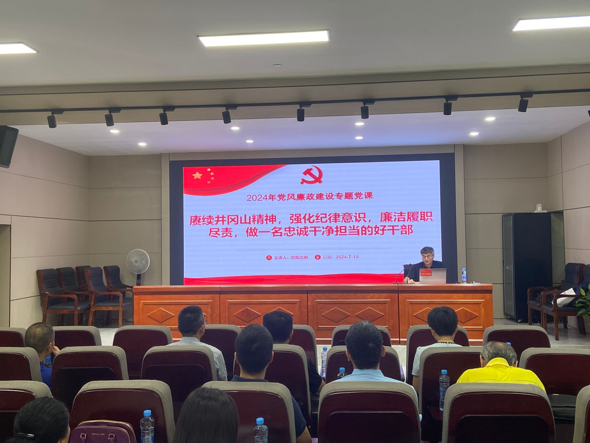 为深入贯彻落实习近平总书记关于党纪学习教育的重要讲话和重要指示精神,扎实开展党纪学习教育。7月10日下午,校党委委员、副校长欧阳志刚在教31栋104报告厅开展以《赓续井冈山精神,强化纪律意识,廉洁履职尽责,做一名忠诚干净担当的好干部》为题的党纪学习教育专题党课。学工部、保卫处、审计处、后勤中心副处级以上干部,经管学院班子成员及各支部书记聆听党课。